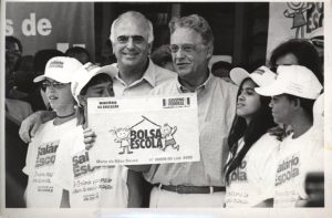 O Ministério da Educação cria o Programa Bolsa Escola (Medida Provisória 2.140/2001) visando assegurar a permanência das crianças na escola, combater o trabalho infantil e amenizar a extrema pobreza. O programa estabelece a transferência de renda para famílias com renda inferior a dois salários mínimos e com crianças entre 6 e 15 anos condicionada à frequência escolar. A transferência de recursos da União se dá por meio de um cartão magnético, diretamente para as mães das crianças. O benefício consistia em R$15,00 por crianças, para até 3 crianças por família.